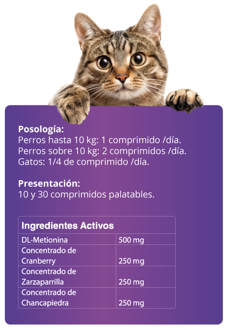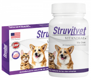 STRUVITVET Vitanimal es un producto 100% natural, formulado especialmente para apoyar la salud del sistema urinario. Está indicado para la disolución y prevención de cálculos y cristales de estruvita, ayudando a mantener un adecuado equilibrio urinario. Además, actúa como un potente antiinflamatorio natural de las vías urinarias, contribuyendo a aliviar molestias, reducir la inflamación y favorecer el bienestar general de mascotas que presentan afecciones urinarias.